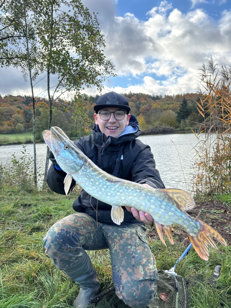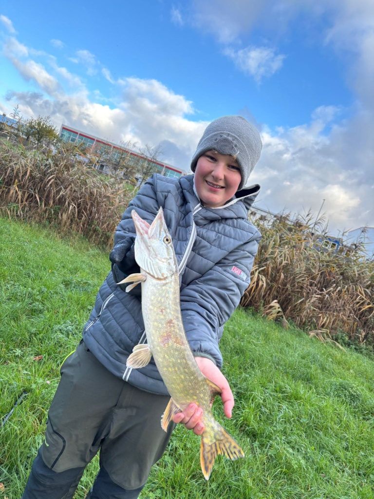 Gefischt wurde mit der Spinnmethode, und unsere Jungfischer hatten sichtlich Spaß daran, ihre neuen Köder auszuprobieren. Schon bald zeigten sich die ersten Erfolge und es konnten Hechte gefangen werden! Die Begeisterung war groß, und selbst das ungemütliche Wetter konnte die gute Laune nicht trüben.